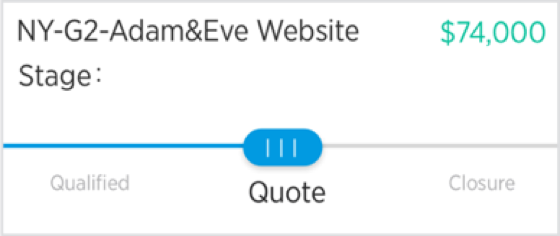 By providing the earlier and next stage users will have a better context of this deal's stage. There are only three stages included because it will give users enough space to swipe to avoid making mistakes.
